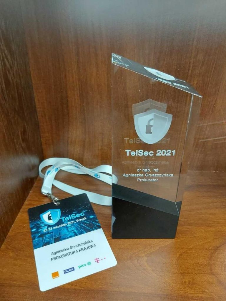 Informujemy, że podczas konferencji TelSec 2021, która odbyła się w dniach 22-23.09.2021 r. dr hab. Agnieszka Gryszczyńska z Katedry Prawa Informatycznego otrzymała nagrodę TelSec 2021, za działania związane ze zwalczaniem cyberprzestępczości. Serdecznie gratulujemy!