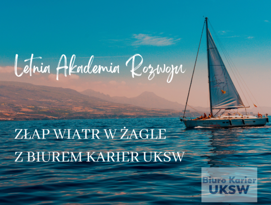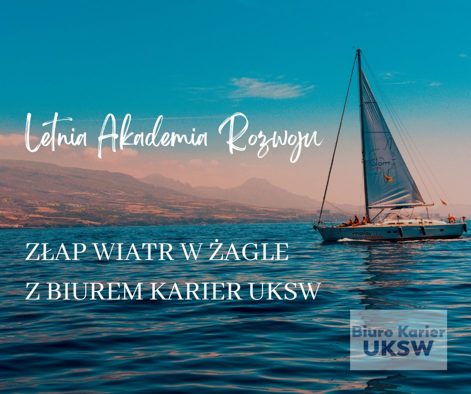 Biuro Karier UKSW nie zwalnia tempa w wakacje, dlatego stworzyliśmy świetne wydarzenie dla naszych studentów – Letnią Akademię Rozwoju, czyli złap wiatr w żagle z Biurem Karier UKSW.