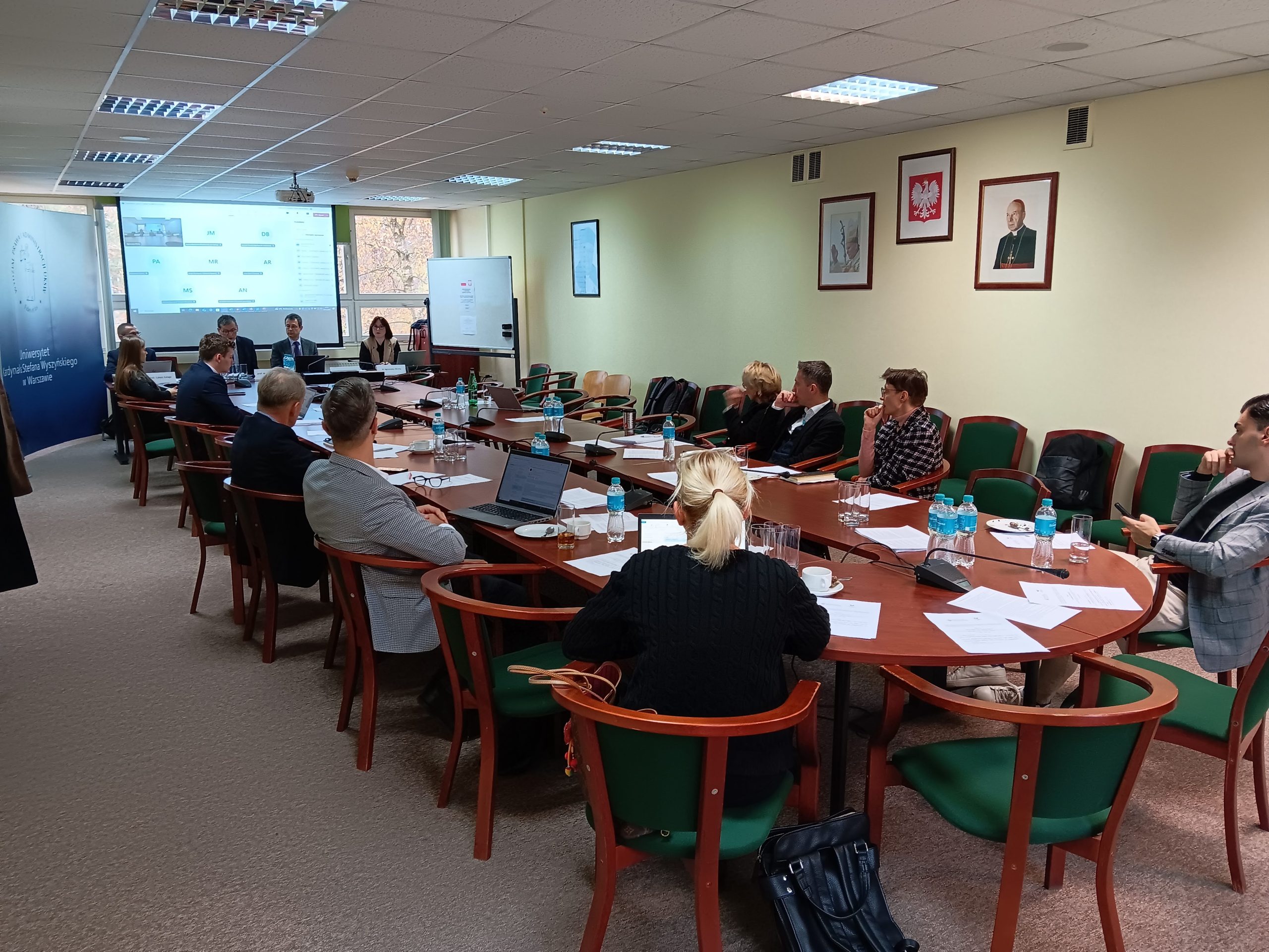 Podczas seminarium prof. Cezary Mik oraz pracownicy Katedry Prawa Międzynarodowego przedstawili założenia realizowanego projektu, a także zaprezentowali zidentyfikowane w ramach badań wymiary reakcji UE na konflikty zbrojne. W drugiej części spotkania omówiona została koncepcja i zakres ankiety, którą zespół badawczy przygotował i będzie realizować we współpracy ze zidentyfikowanymi grupami interesariuszy. Wyniki ankiety zostaną opracowane i przedstawione w raporcie, którego wydanie planowane jest w przyszłym roku.