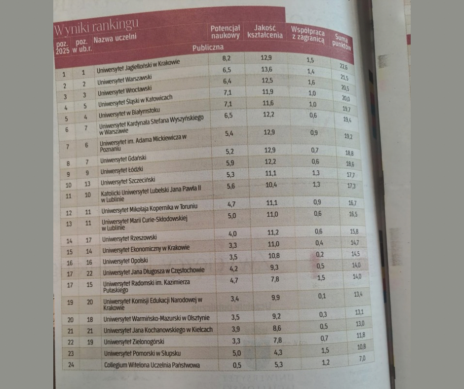 6. miejsce cieszy nas to tym bardziej, że jesteśmy najmłodszym Wydziałem spośród tego grona – w mijającym roku akademickim obchodziliśmy 25-lecie ![]()