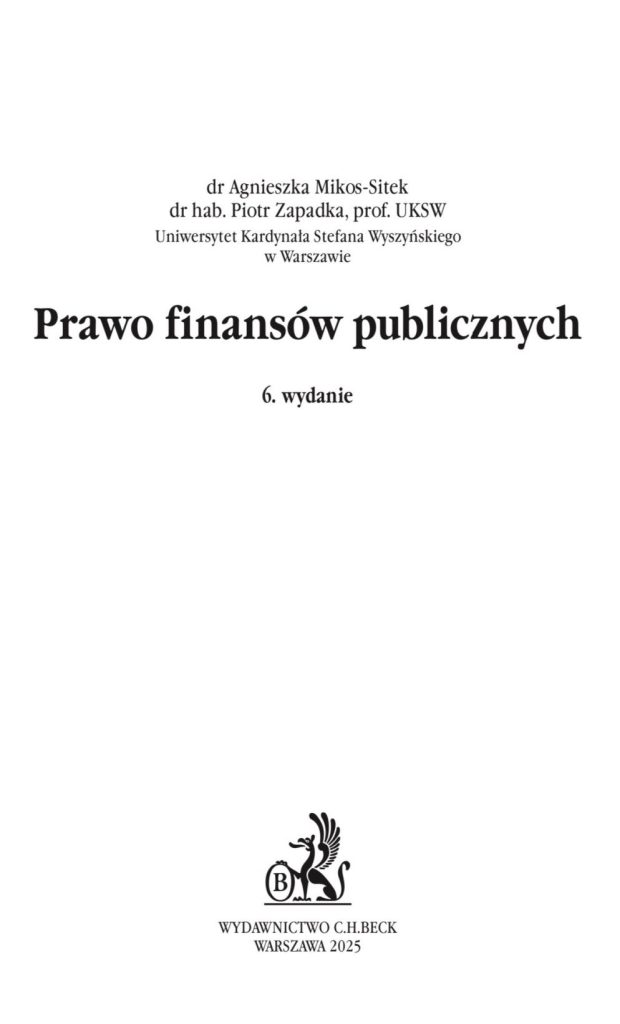 Z przyjemnością informujemy, że nakładem Wydawnictwa C.H. Beck ukazało się 6 wydanie podręcznika „Prawo Finansów Publicznych” pod redakcją dr Agnieszki Mikos-Sitek i dr. hab. Piotra Zapadki, prof. ucz.