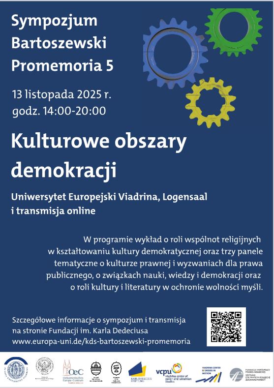 Serdecznie zapraszamy do udziału online w sympozjum Bartoszewski Promemoria 5 pt. „Kulturowe obszary demokracji”, które odbędzie się z udziałem prof. dr hab. Ireny Lipowicz, prof. ucz. dr hab. Natalii Kohtamäki i dr. Ziemowita Cieślika 13 listopada 2025 r. w g. 14.00-20.00.