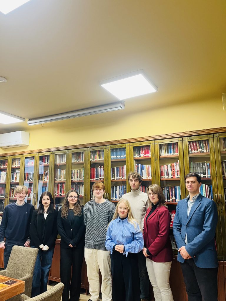W dniu 28 listopada 2025 r. studenci drugiego roku prawa wraz z przedstawicielami Koła Naukowego Prawa Dyplomatycznego i Dyplomacji Publicznej odbyli wizytę edukacyjną w Ośrodku Studiów Wschodnich im. Marka Karpia w Warszawie. Program wizyty obejmował spotkanie z ekspertami OSW, panami: dr. Konradem Popławskim – szefem projektu „Powiązania gospodarcze w regionie” i dr. Marcinem Jędrysiakiem – analitykiem ds. Ukrainy z Zespołu Białorusi, Ukrainy i Mołdawii. Studenci mieli możliwość dyskutować o aktualnych wyzwaniach w stosunkach międzynarodowych i prawie międzynarodowym publicznym. Grupie towarzyszył pan dr. Kamil Strzępek.