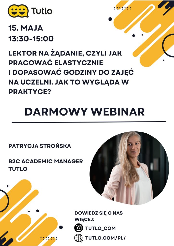 Na webinarze dowiecie się więcej o pracy w Tutlo – idealnej opcji dla osób o poziomie języka angielskiego B2/C1, które chcą pracować elastycznie i zarabiać w dogodnych godzinach.